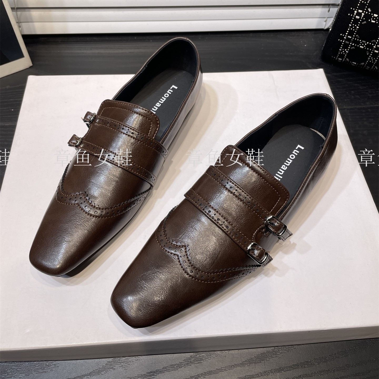 - 漆皮方扣单鞋