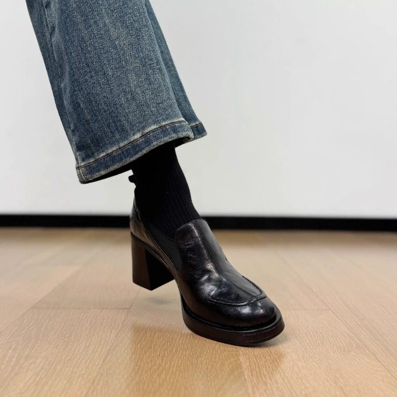 - 防水台粗跟高跟单鞋