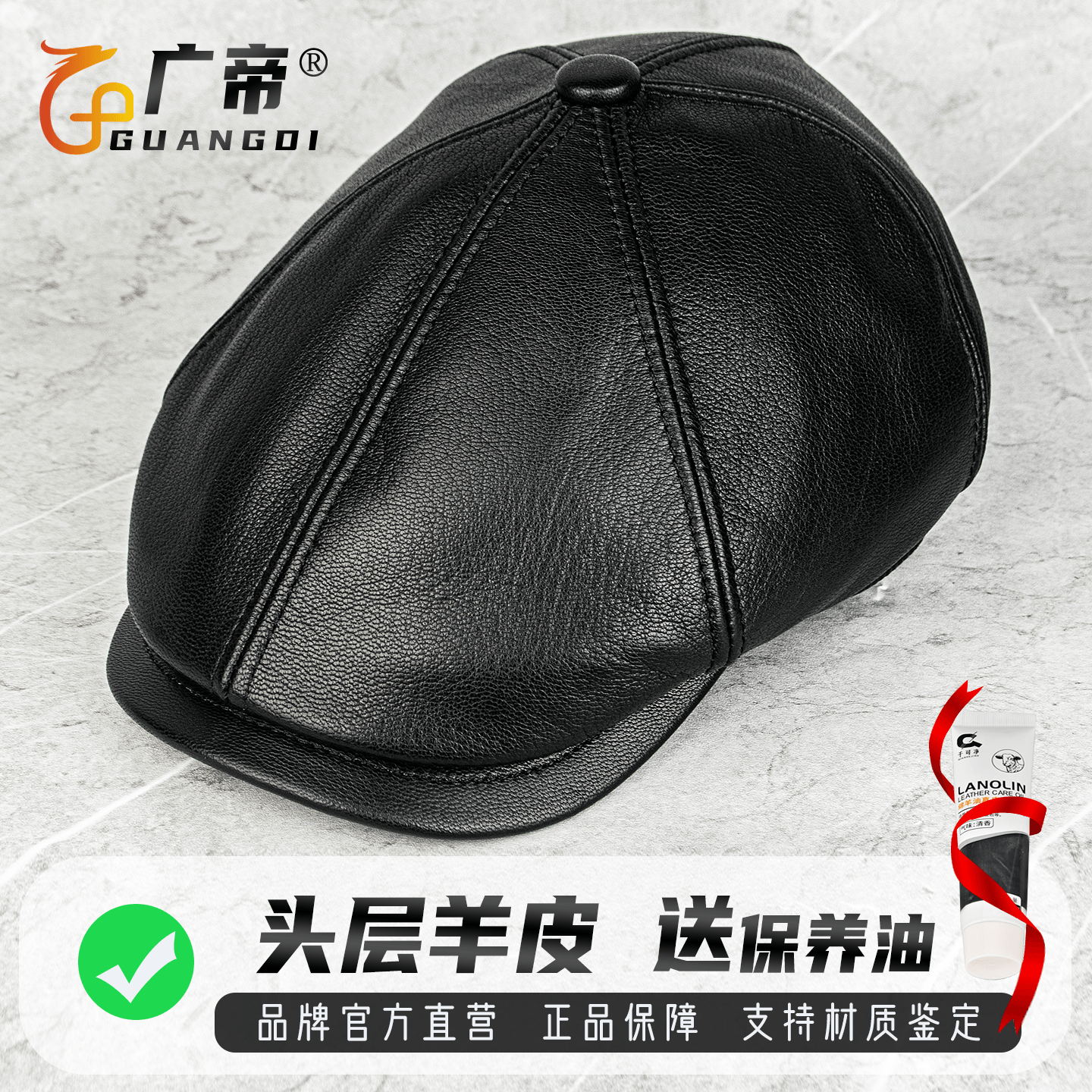 广帝 羊皮 秋冬季真皮帽子男中老年人保暖八角画家帽鸭舌帽贝雷帽