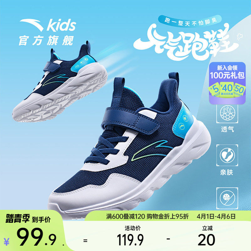 安踏儿童运动鞋男童鞋2026春季新款网面透气抗菌轻便元气跑步鞋子