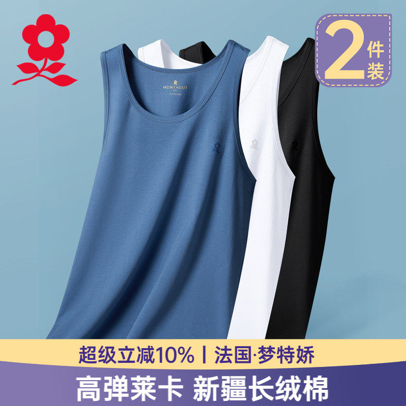 梦特娇棉质背心男士内穿打底跨栏健身运动透气吸汗衫白色吊带夏季