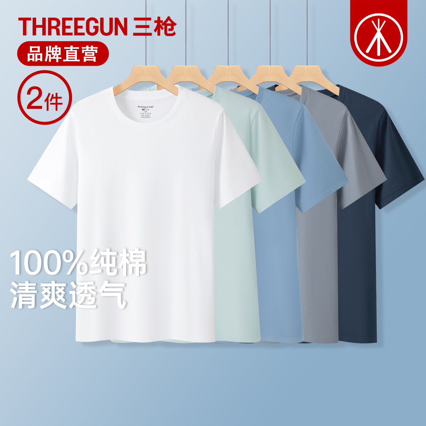 三枪短袖男T恤100%新疆棉纯棉白色打底内衣运动宽松罗纹男士汗衫