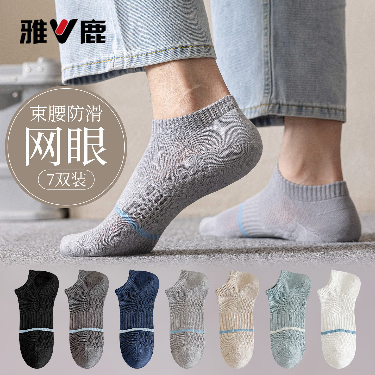 雅鹿袜子男士夏季薄款短袜男生低帮棉袜2026新款防臭吸汗白色船袜