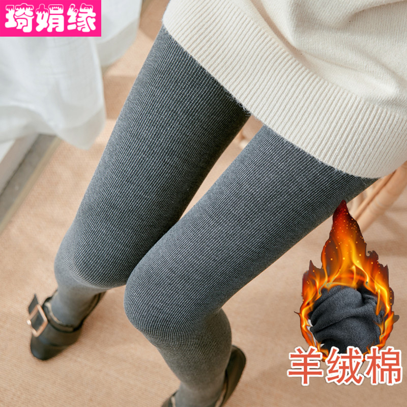 羊毛打底裤女加绒加厚秋冬季高腰显瘦弹力保暖裤踩脚外穿棉裤新款