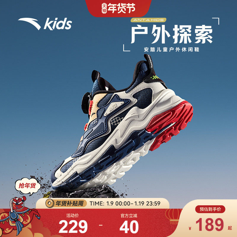 安踏儿童运动鞋男女童鞋2025秋新款户外登山徒步鞋运动跑鞋旋钮鞋