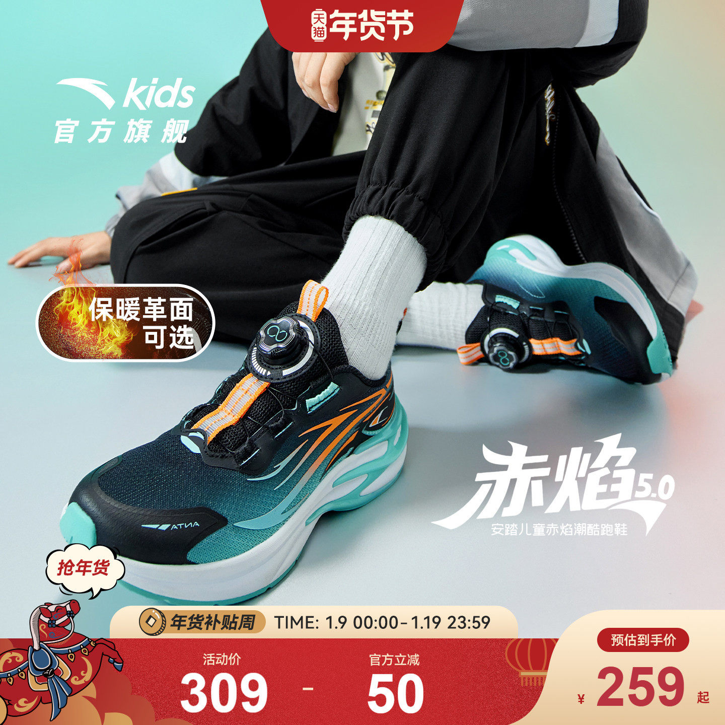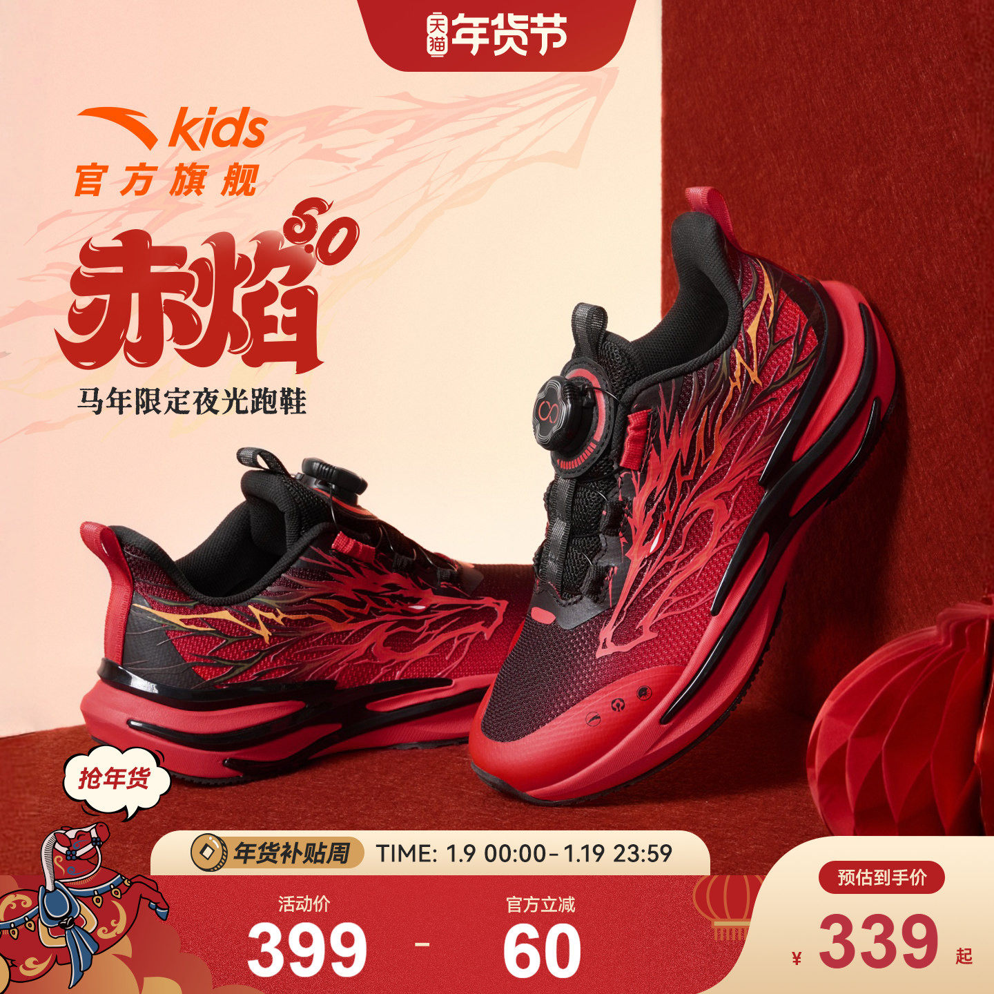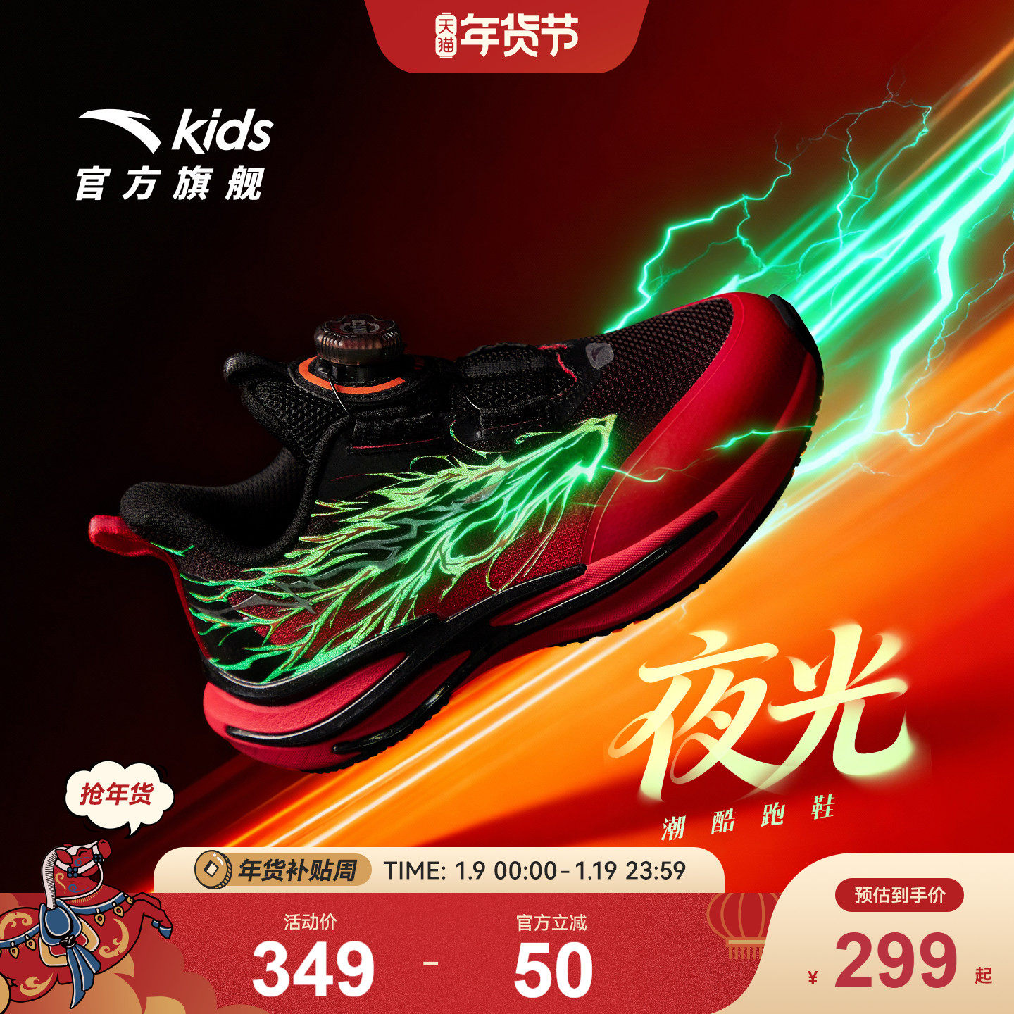 安踏儿童运动鞋2026新年赤焰6冬季男女小童跑鞋童鞋跑步夜光鞋