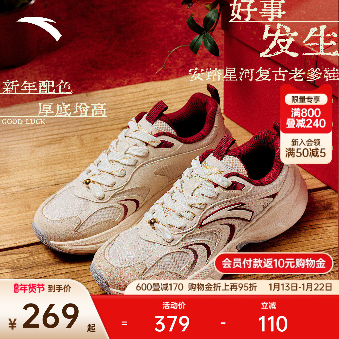 安踏好事发生 芝士蛋糕丨厚底板鞋男女款新年配色运动鞋122618071