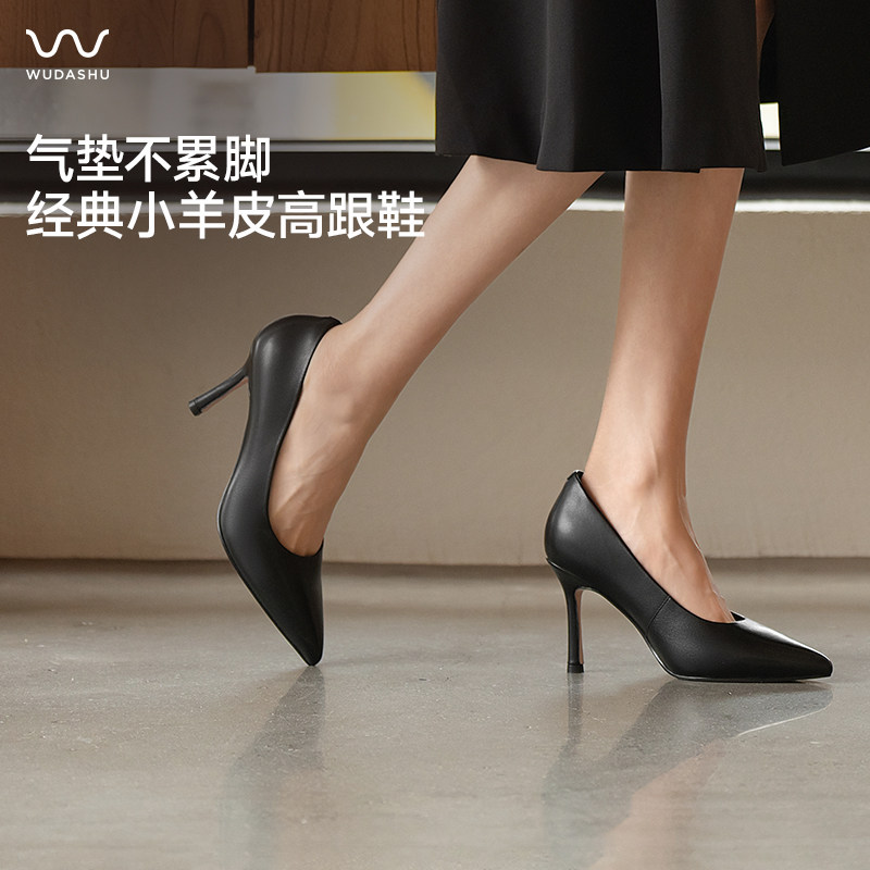 吴大叔高跟鞋女细跟黑色气质高级不累脚尖头单鞋皮鞋子女鞋配裙子