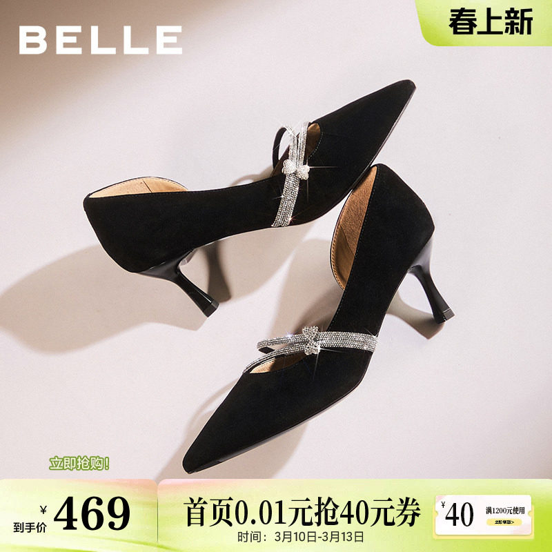 百丽优雅高跟鞋女2026新款不累脚细跟婚鞋年会浅口单鞋子B3002AQ6