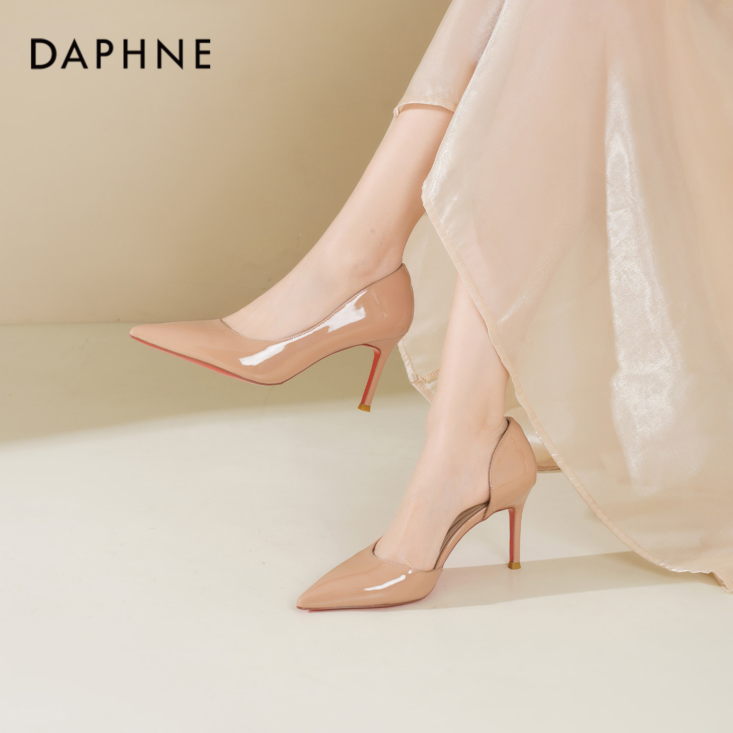 达芙妮裸色高跟鞋女2026新款春季气质鞋子通勤红底尖头细跟单鞋女