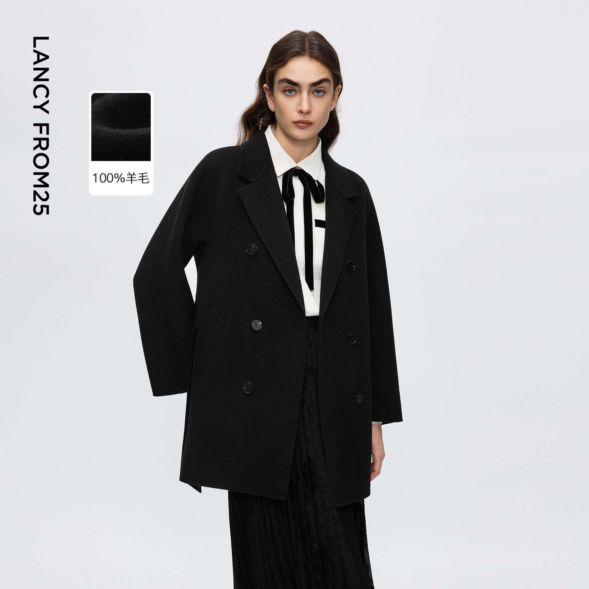 2025秋冬新款双面羊毛大衣女中长款西装领系带修身毛呢外套2501