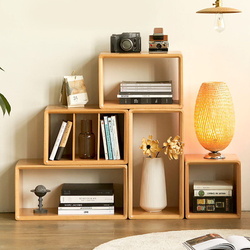 北欧书架实木落地矮书柜客厅小户型置物架日式组合收纳展示杂志架