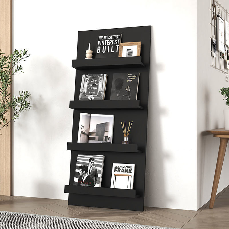 落地书架网红靠墙收纳架黑胶北欧书架绘本展示架杂志架多层定制架