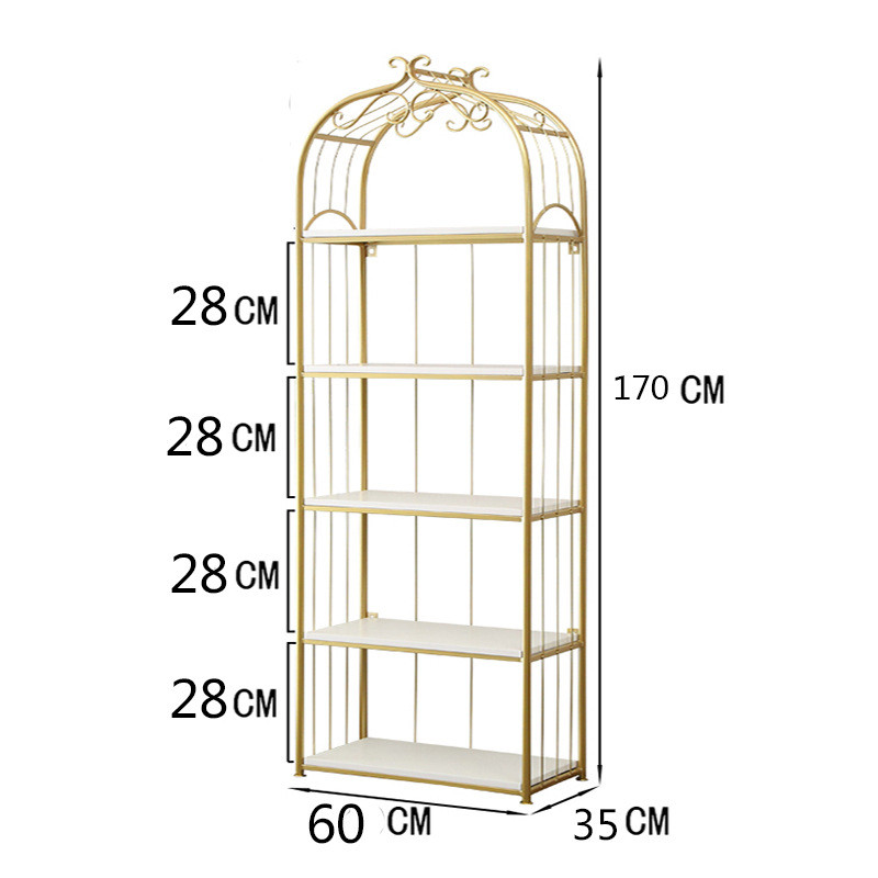 北欧置物架金色铁艺客厅收纳架多层落地隔板架书架轻奢美甲展示架