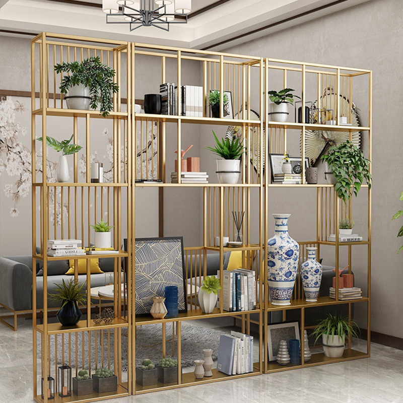北欧书架客厅隔断铁艺置物架金色大理石落地轻奢收纳架装饰展示架