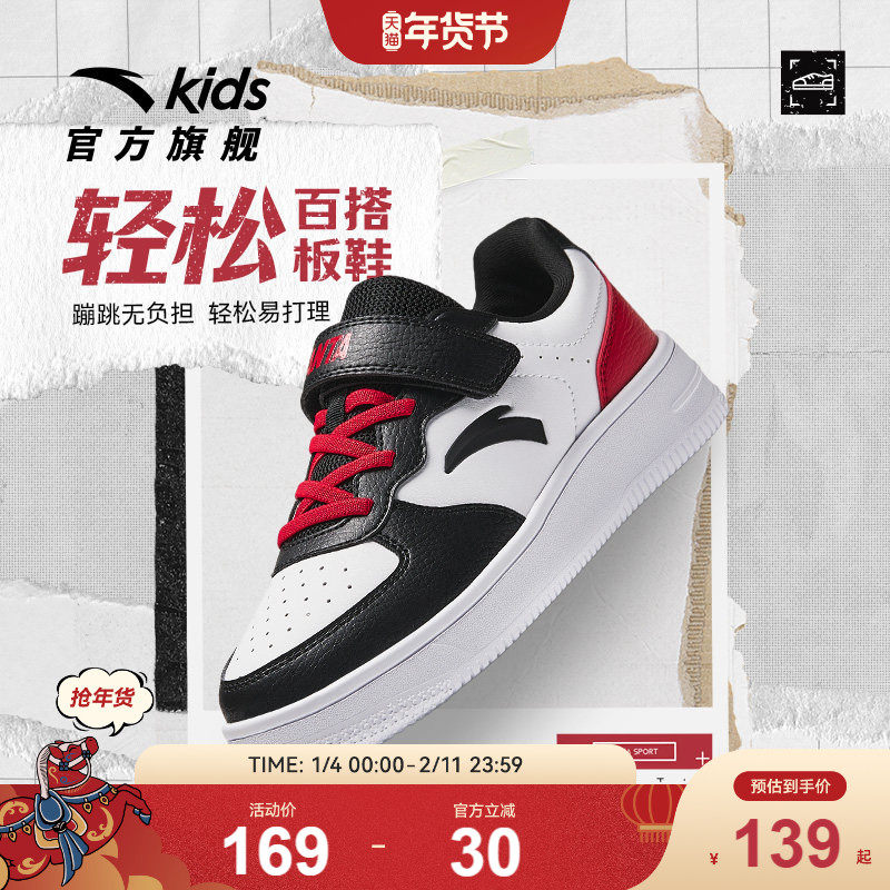 安踏儿童低帮板鞋春秋新款男女大小童红色小白鞋百搭休闲鞋运动鞋