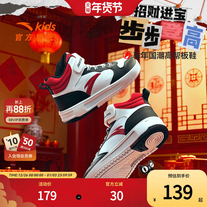 安踏儿童男女小童高帮板鞋2025秋冬新款篮球文化耐磨保暖鞋运动鞋