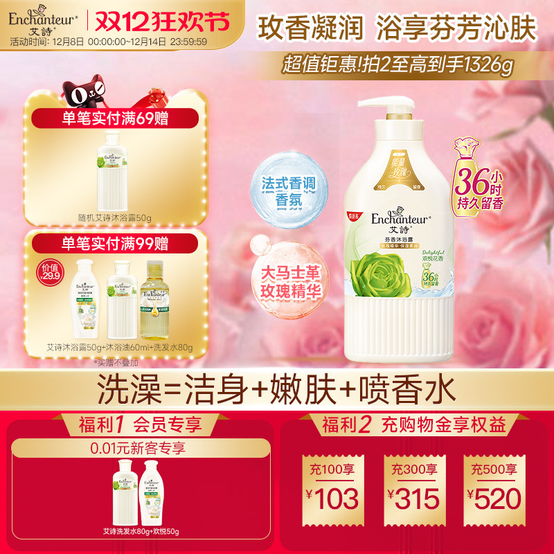 艾诗沐浴露持久留香花香沐浴露女滋润沐浴乳液正品官方品牌650g