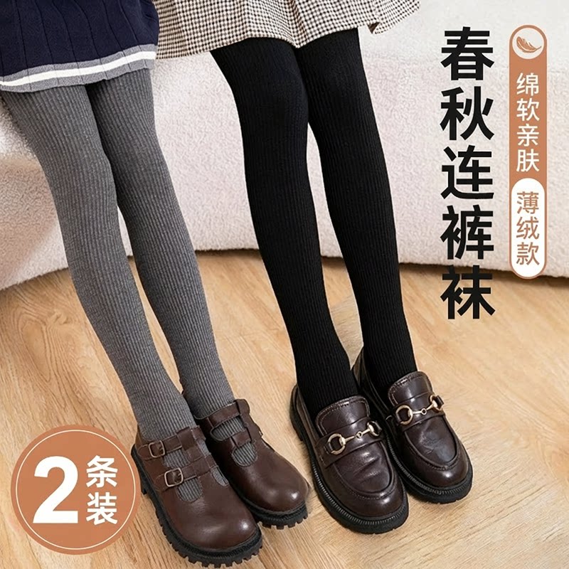 女童连裤袜春秋薄绒款灰色外穿裤袜春季薄款打底袜黑色儿童打底裤