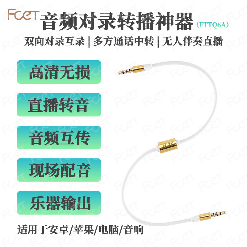 FCE音频对录线双向互录器内录线手机35声卡线直播转发转接线FTTQ6