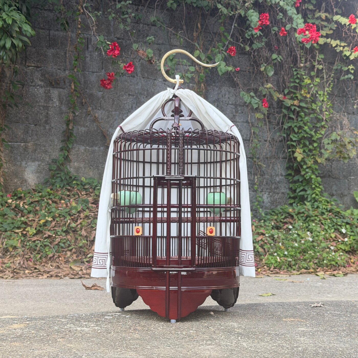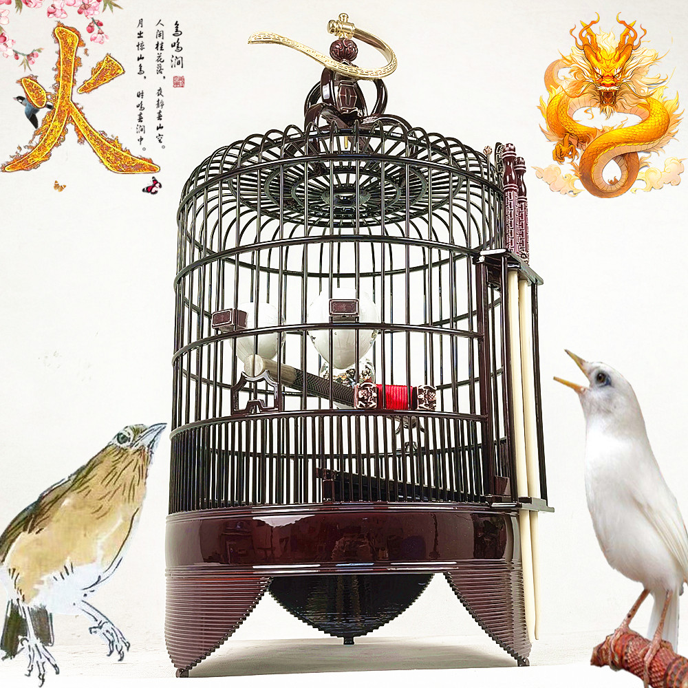 2024新款复古仿爆漆广式画眉广笼广西底圆形八哥鸟笼全套高级配件