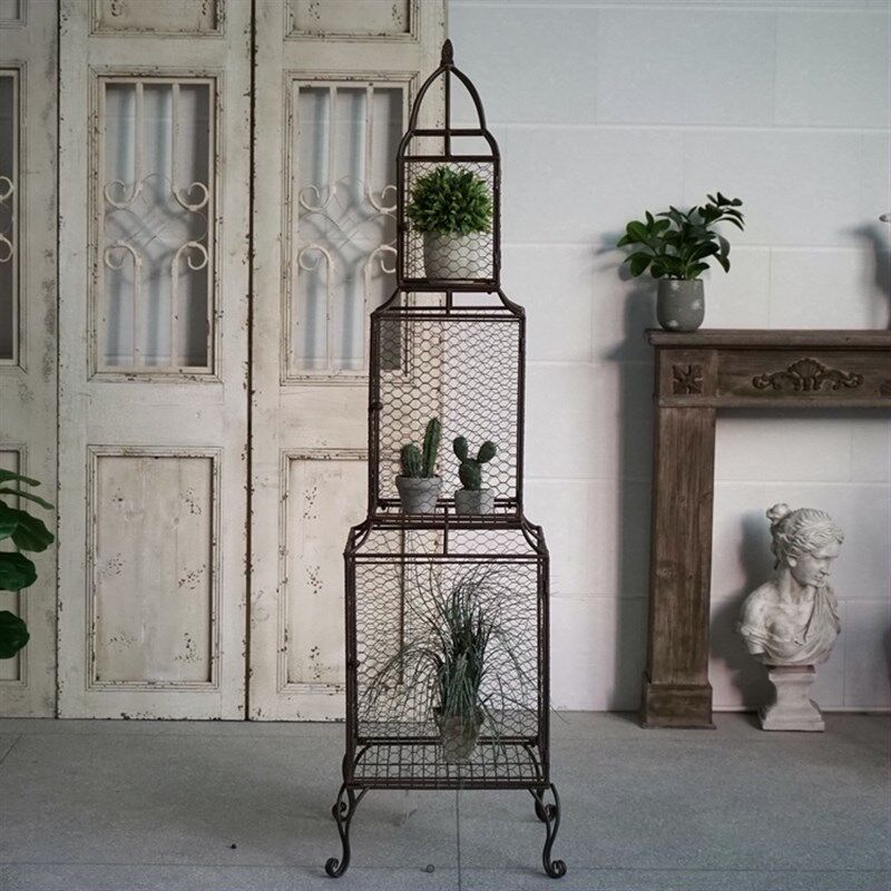 复古落地鸟笼造型花架爬藤架 园艺杂货 橱窗陈列店铺美式乡村软装