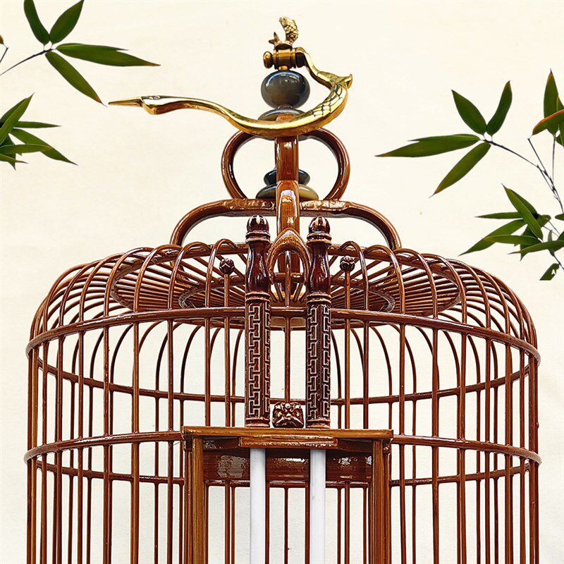 新款全复古酒红色广式画眉广笼广西底老竹便宜高级鸟笼子全套配件