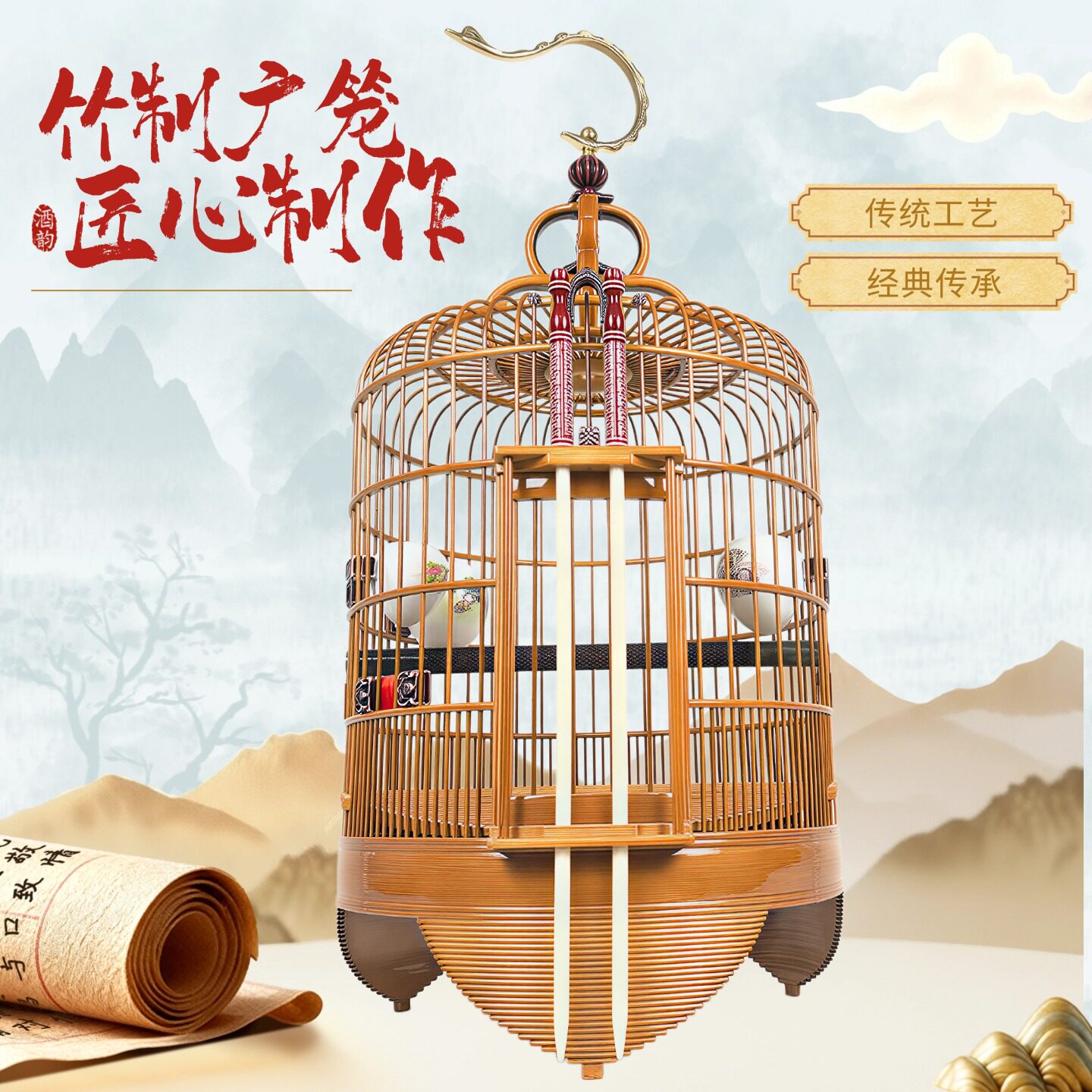 新款复古老竹纯手工高档便宜广西底广式画眉公母广笼鸟笼全套包邮