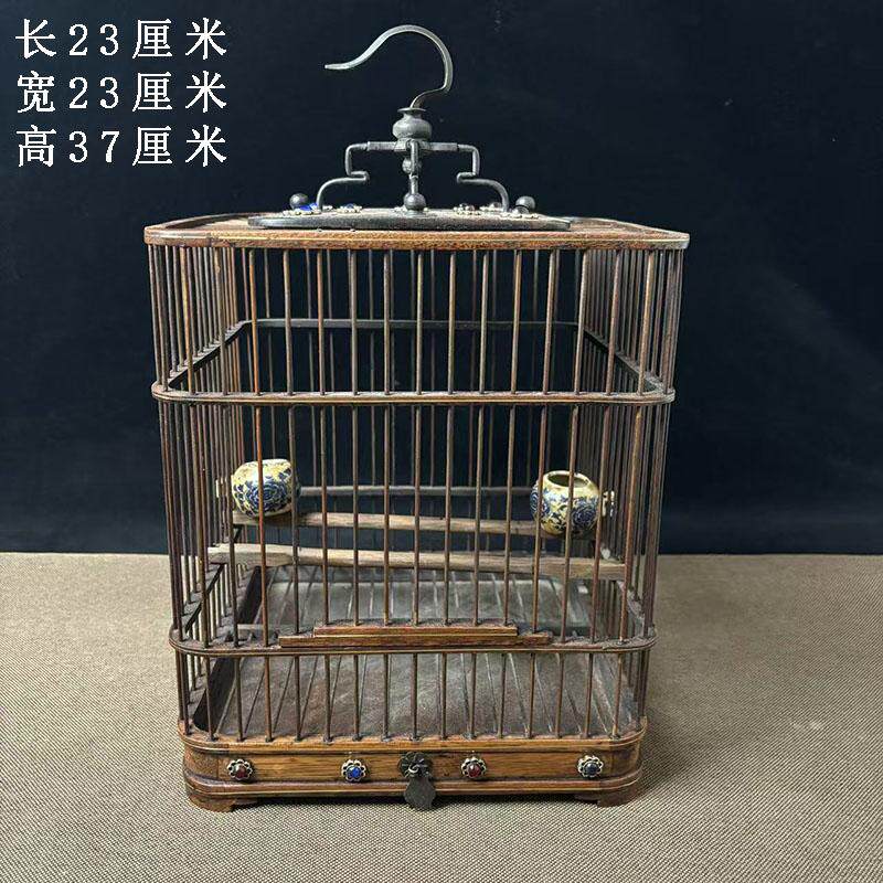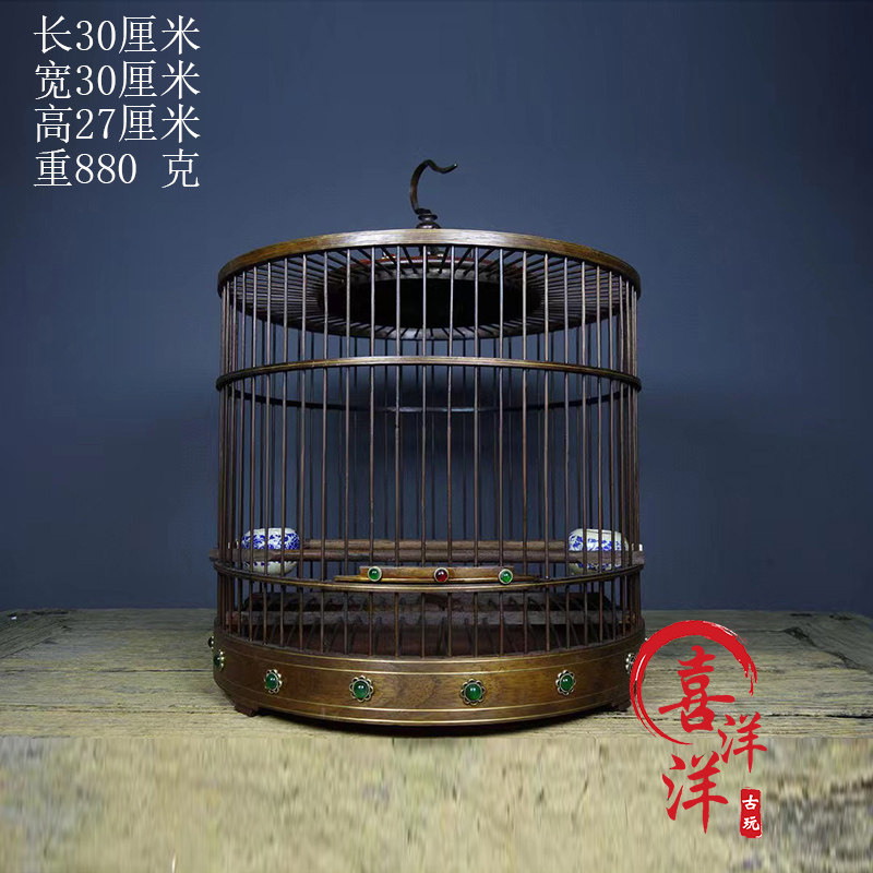 古董文玩花梨木镶嵌宝石圆鸟笼鸽D子笼鹦鹉笼挂件复古收藏老物件