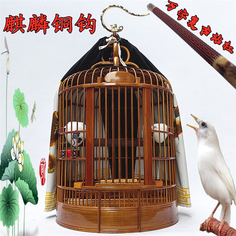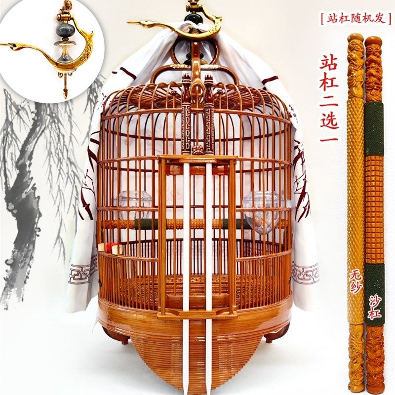 2024新款全复古老竹广式画眉广笼便宜圆形广西底鸟笼全套豪华配件