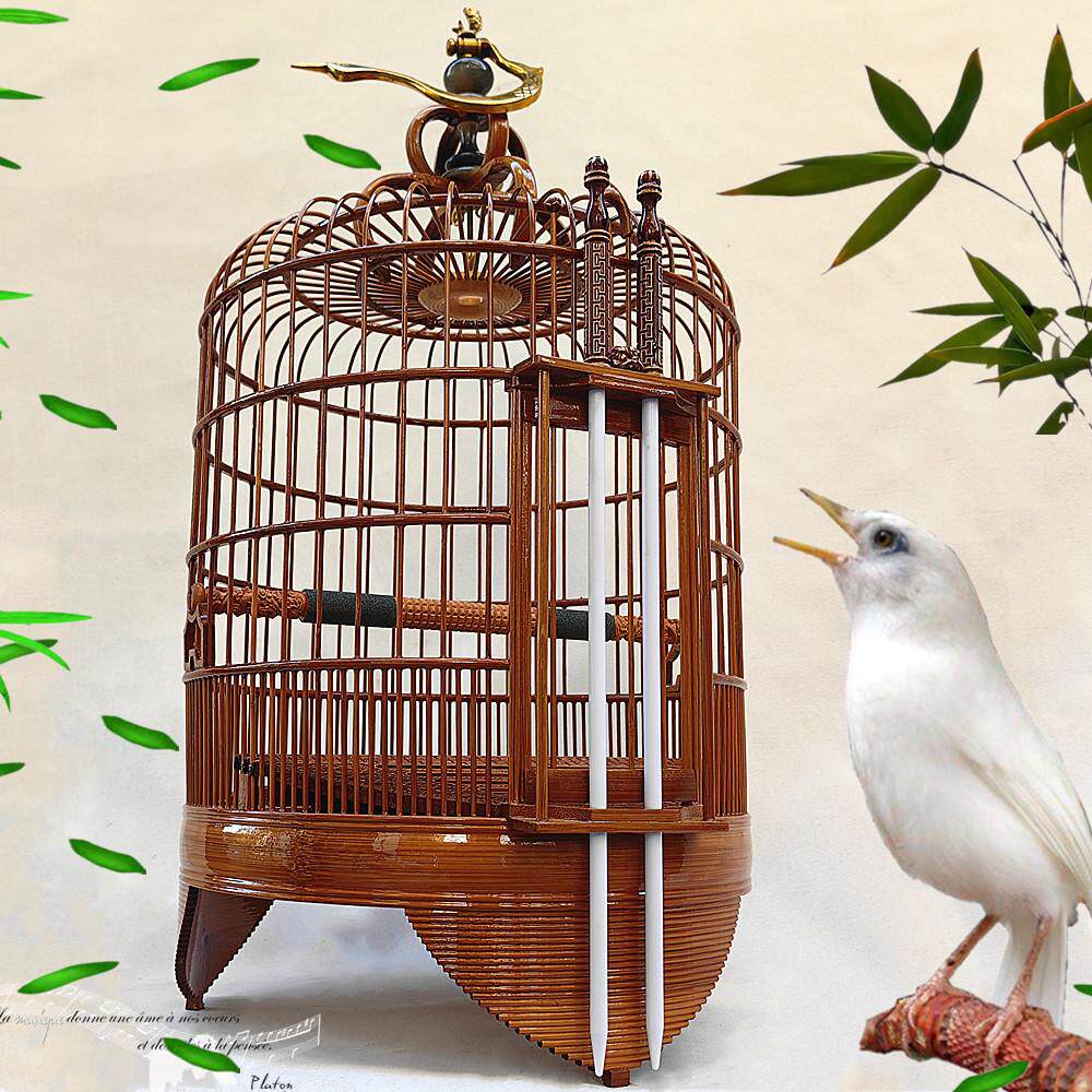 新款复古画眉广笼高档老楠竹八哥四喜竹制鸟笼橙头地鸫鸟笼鸟笼子