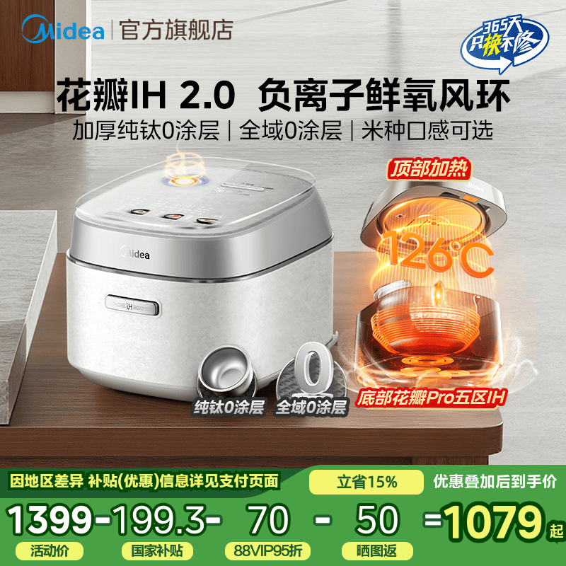 政府补贴美的花瓣ih电饭煲纯钛0涂层4L家用3-4人赤炎无涂层电饭锅