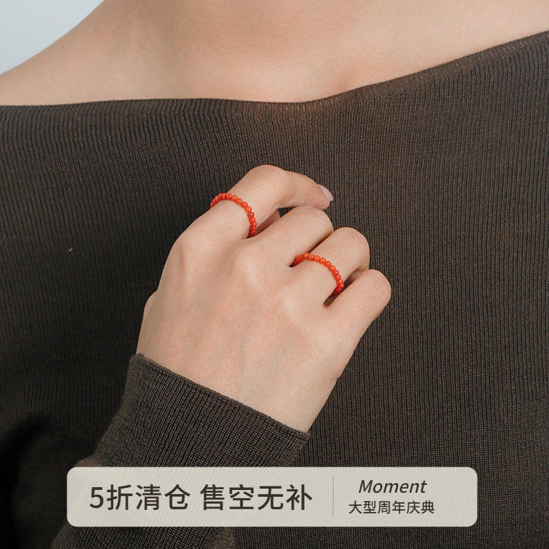 Moment 天然南红玛瑙串珠戒指尾戒指环新年红色玄学首饰小众设计