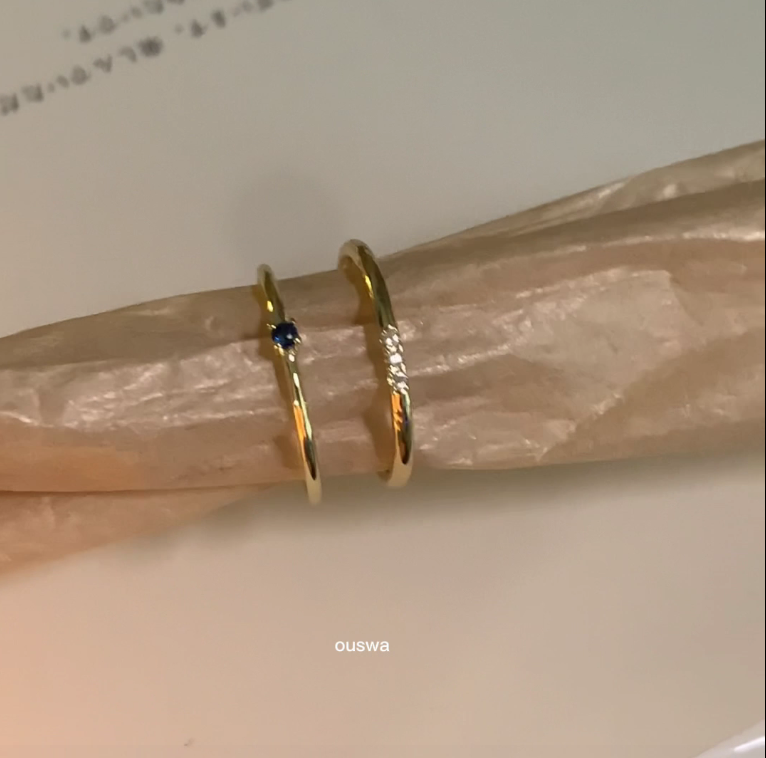 ouswa耳饰 阳光和海岸,闺蜜宝蓝微镶锆石叠戴细戒指尾戒指环