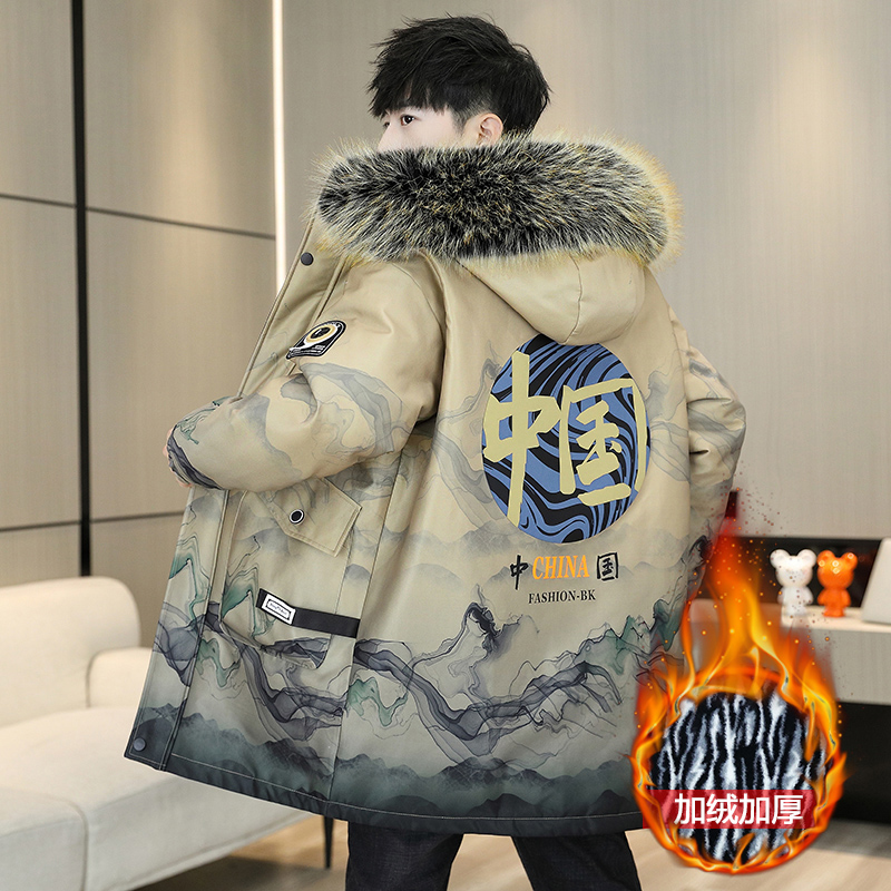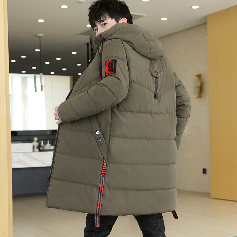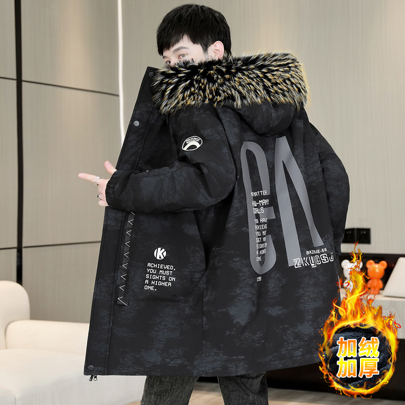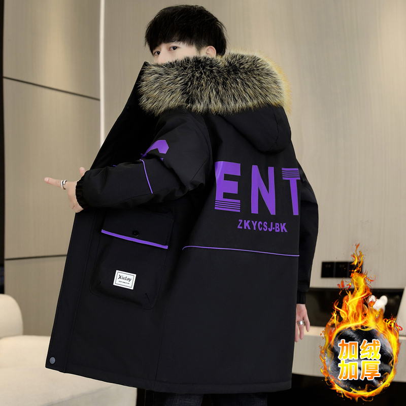 青少年男款羽绒服中长款加绒加厚派克服男装帅气学生棉服冬季外套