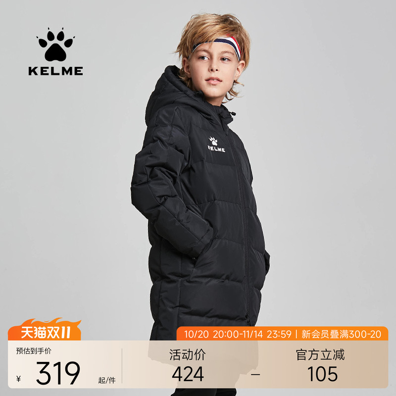 KELME卡尔美 儿童运动棉衣男女足球训练保暖棉袄小学生中长款棉服