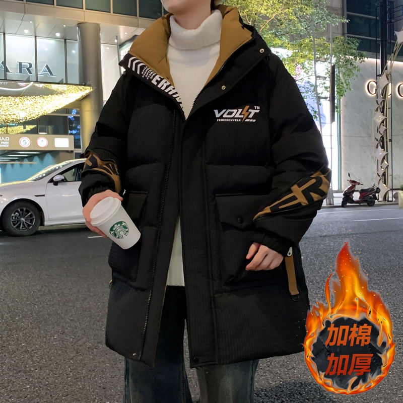 羽绒棉服男士中长款冬季新款棉袄男外套青少年学生帅气保暖厚棉衣