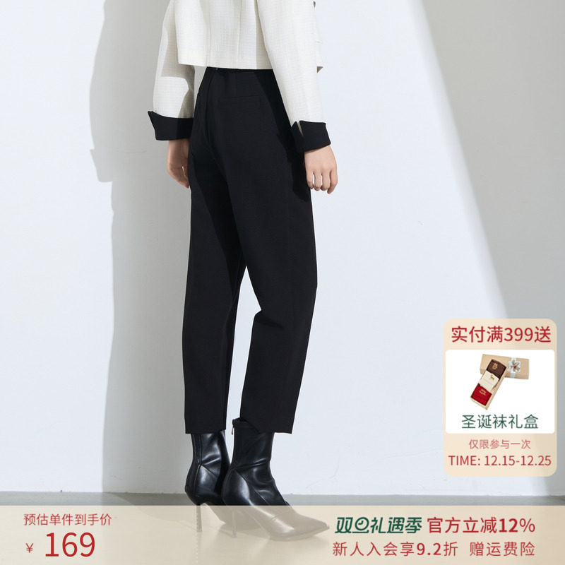 黑色烟管裤女秋冬九分裤小个子裤子2025新款加绒西装裤大码哈伦裤