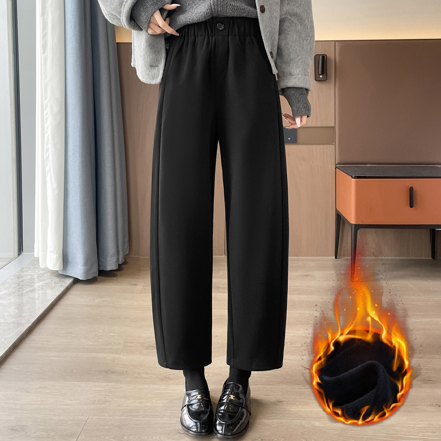 黑色加绒裤子女冬季2025新款九分裤女士哈伦裤中年妈妈裤加厚女裤