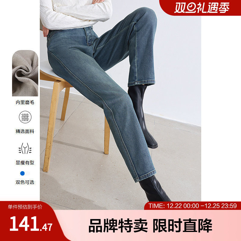 豹纹牛仔裤女2025冬季新款裤子加绒九分裤大码时尚显瘦高腰哈伦裤