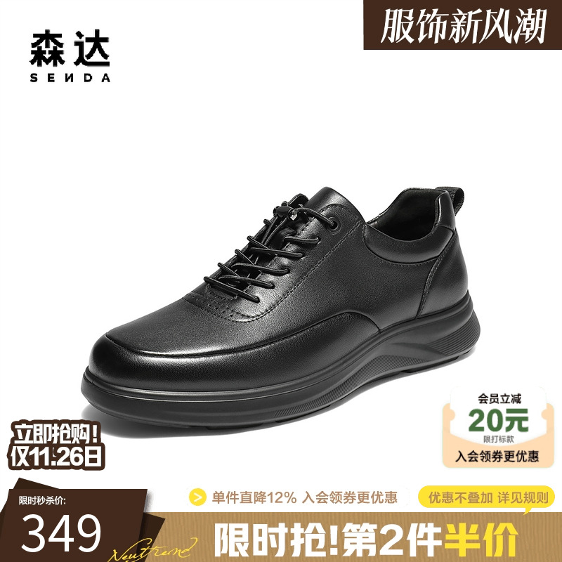 森达板鞋2025冬新款头层牛皮男鞋厚底百搭简约休闲板鞋JDZ71DM5