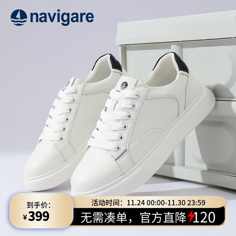 Navigare意大利小帆船板鞋男款2025秋冬新款厚底头层牛皮小白鞋男