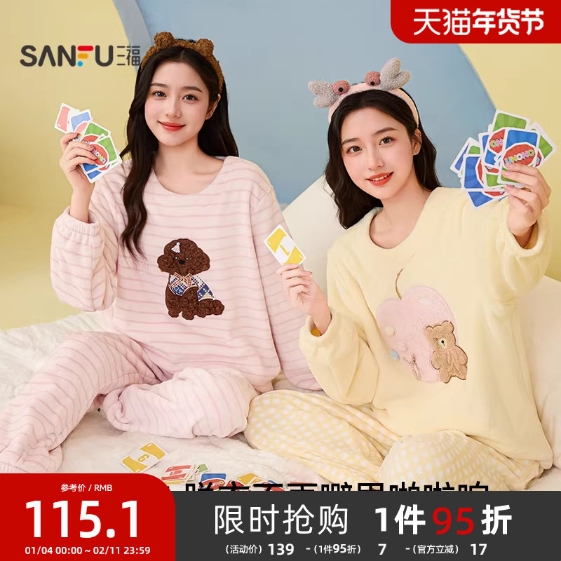 - 秋冬加厚珊瑚绒睡衣女