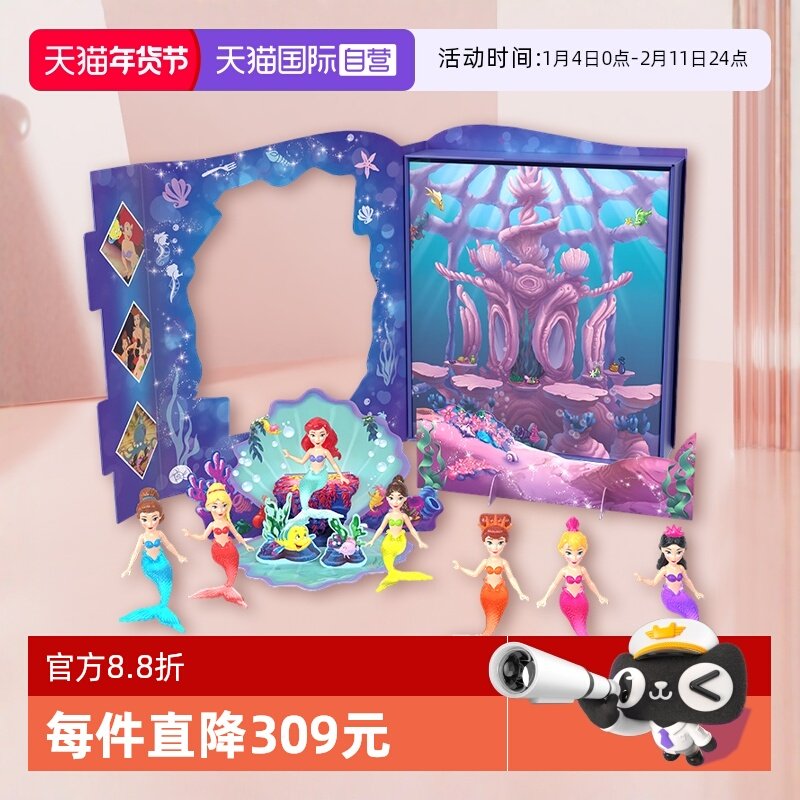 【自营】芭比迪士尼公主系列爱丽儿和姐妹故事书套装女孩互动玩具