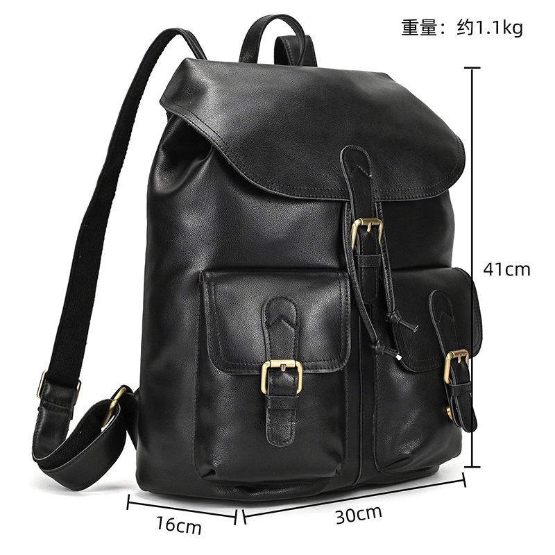 经典好用软牛皮黑色双肩包 电脑真皮书包 旅行好物背包 男女同款
