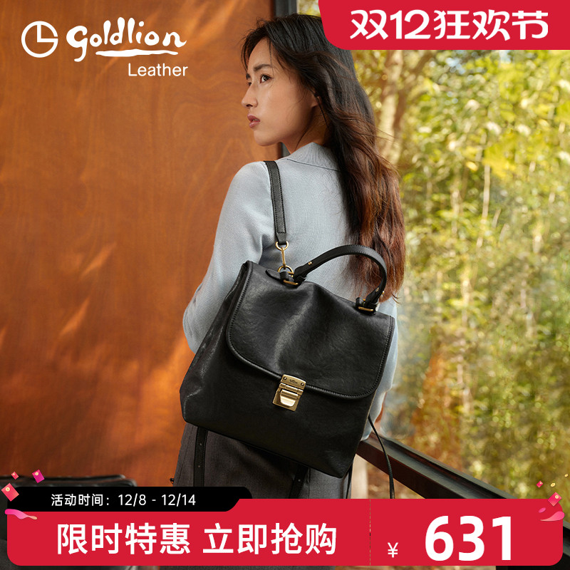 金利来时尚新款真皮双肩包女包通勤简约小众高级质感黑色牛皮背包
