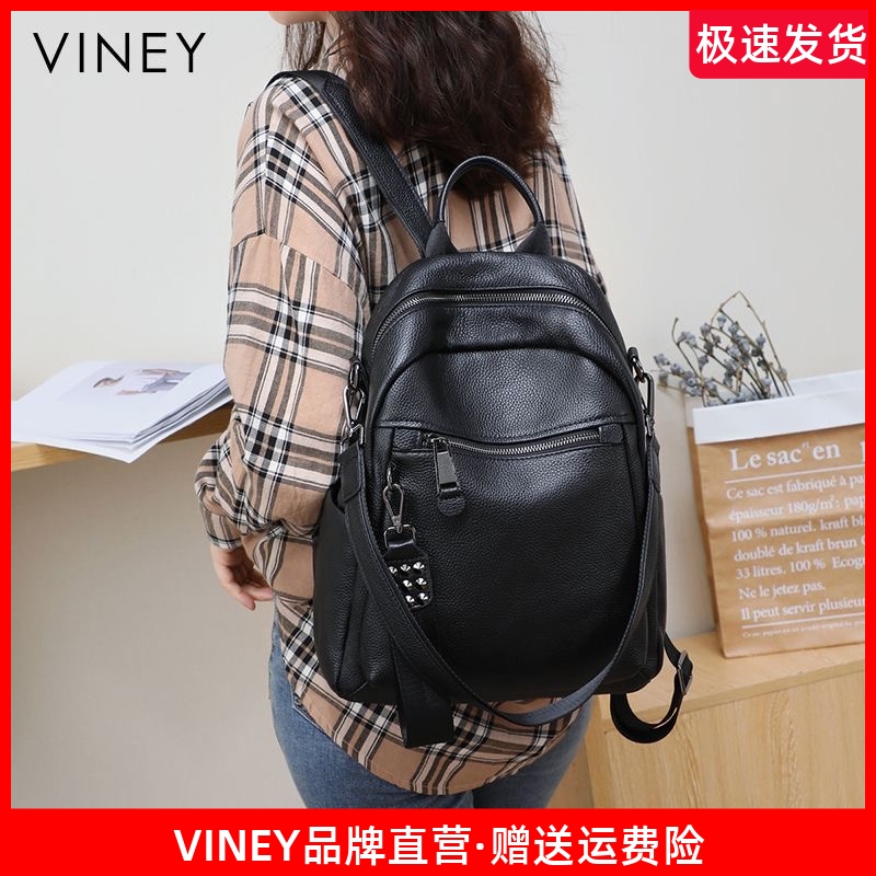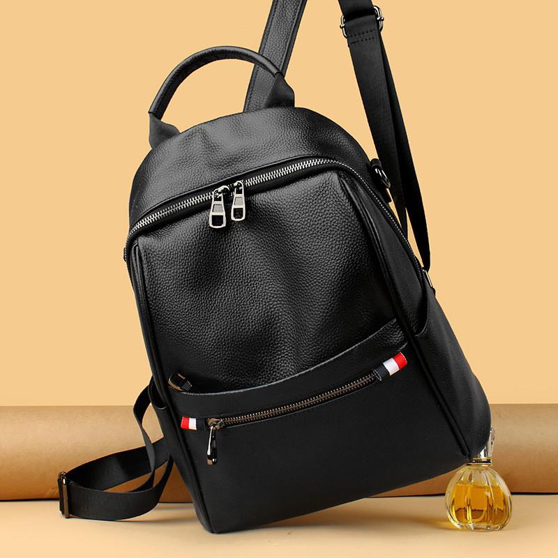 真皮双肩包女头层牛皮时尚百搭休闲旅行手提黑色背包单肩包斜挎包