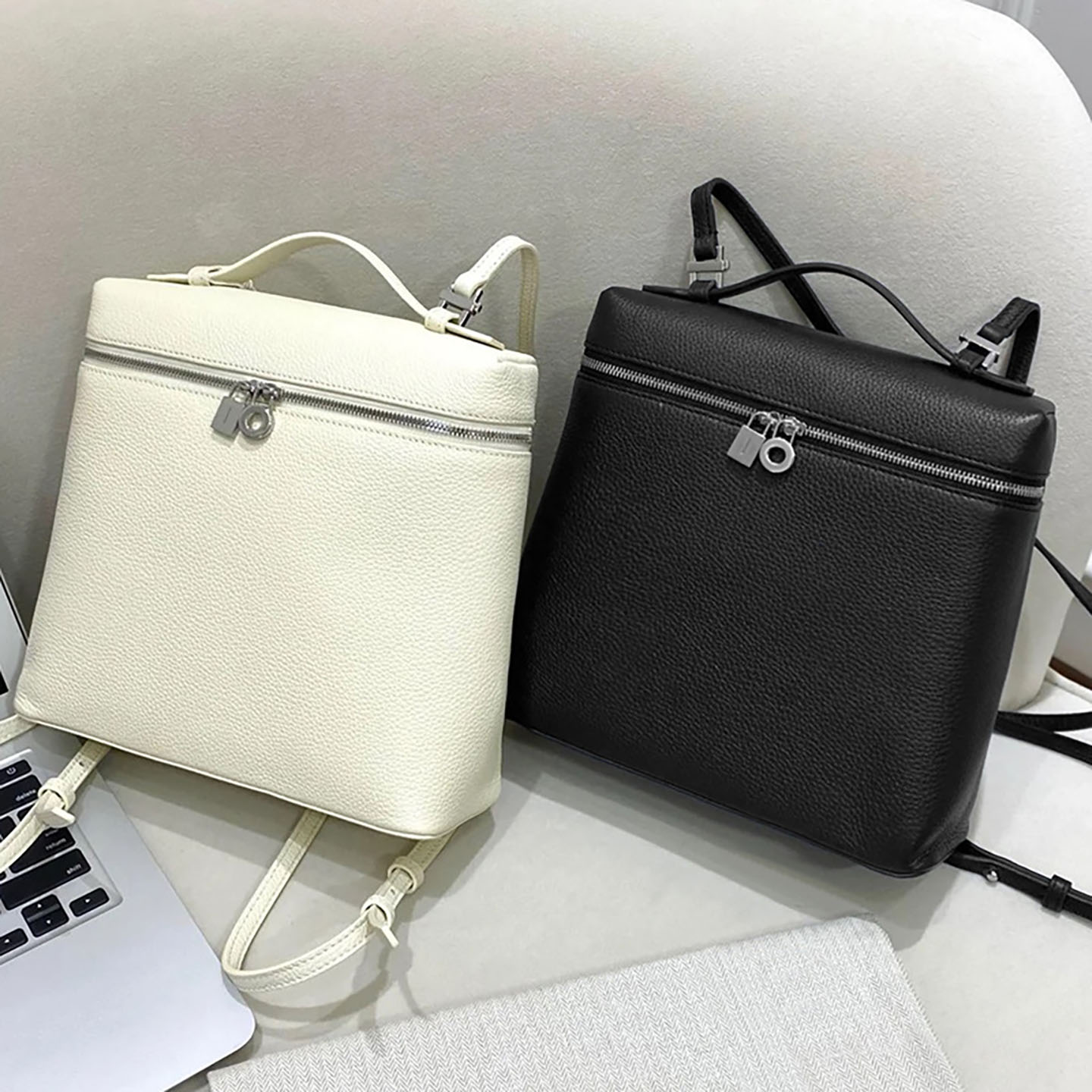 真皮中大学生背包高级感便携包黑色双肩包轻便女生ins时尚轻奢包
