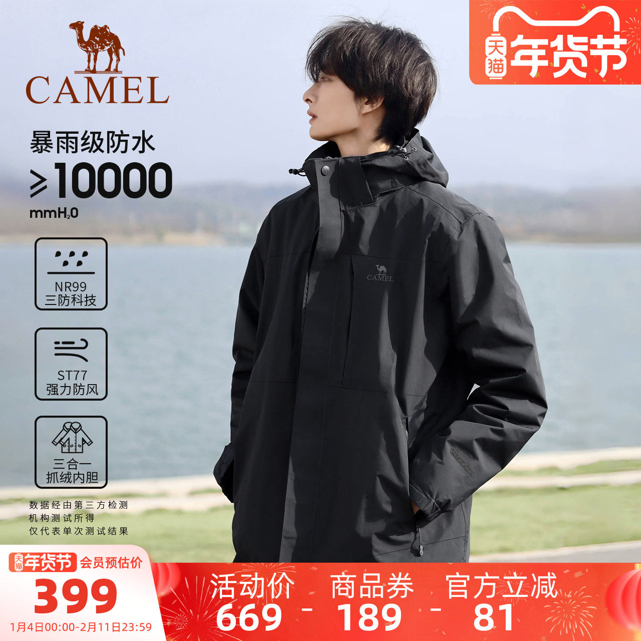 骆驼男装户外冲锋衣男款三防三合一夹克外套暴雨级内胆摇粒绒登山