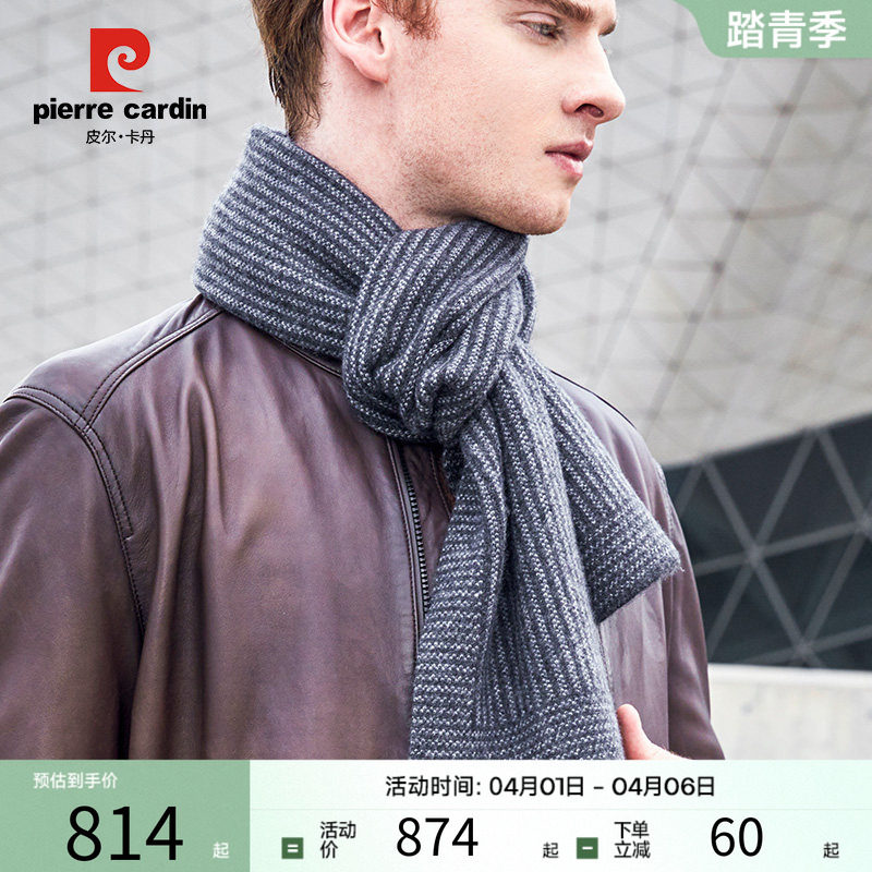 皮尔卡丹羊绒围巾男款秋冬季加厚保暖百搭羊毛围脖送爸爸长辈礼盒